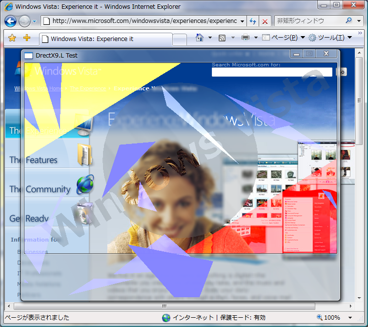 川西さんにヒントをもらって色々実験してみたところ,DirectX で描画したアルファ値を使って DWM のウィンドウ・コンポジションを行うことができました.